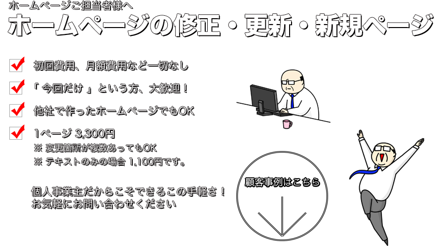 画像の入れ替え、テキストの入れ替え、新しいページの追加、問い合わせフォームの修正・・・
